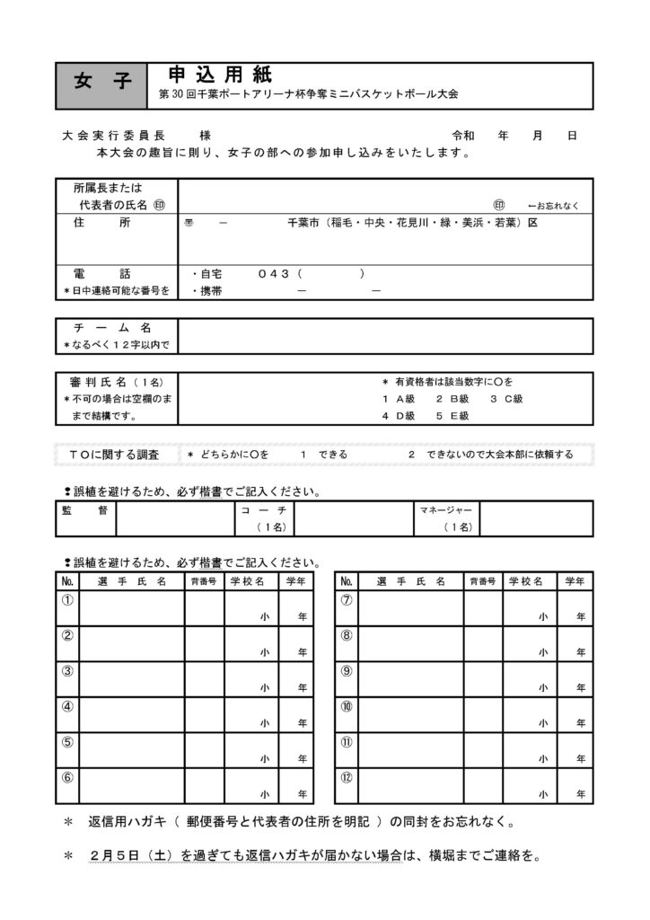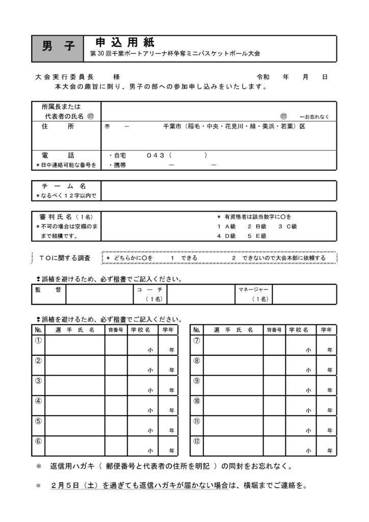 千葉市立源小学校 千葉市バスケットボール協会 横堀 亮 宛