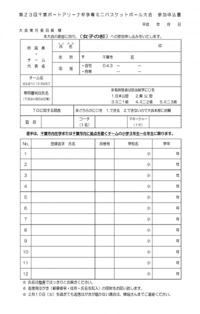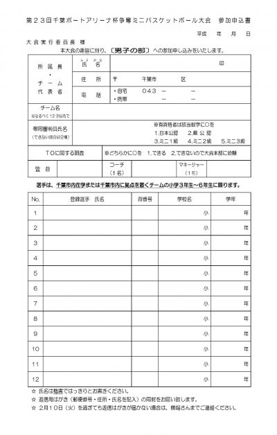 | 大会名 | 第23回千葉ポートアリーナ杯争奪ミニバスケットボール大会 |